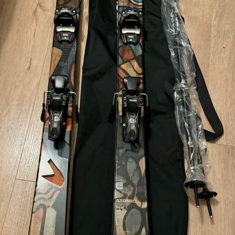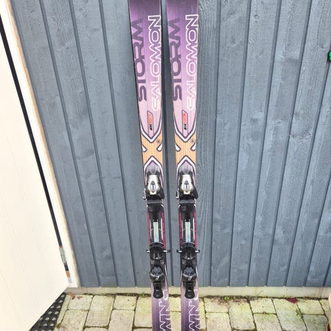Skiene er 182 cm lange og monteret med Salomon bindinger.
