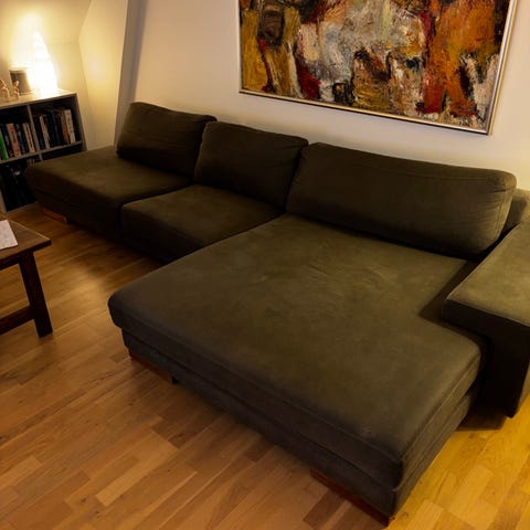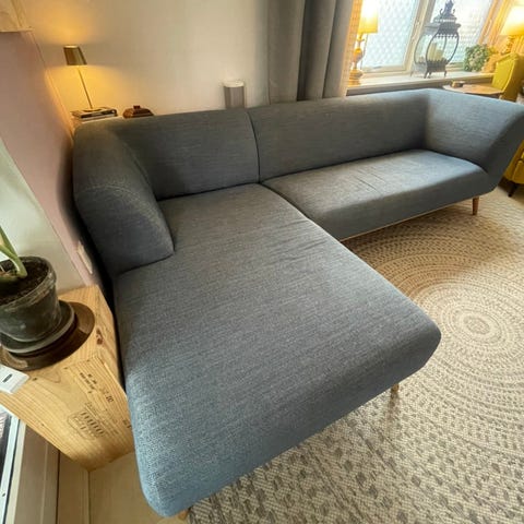 4 år gammel men virkelig fin stand. Højde ryg 70 cm / puder så 85 cm. Chaiselong 115 bred og 170 dyb