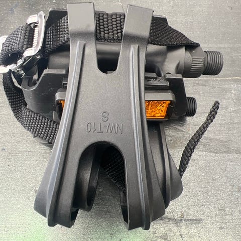 ALE Alluminio tåclips til cykelpedaler i sort aluminium. Modellen monteres på standard pedaler med skruer gennem de aflange monteringshuller. Egnet til brug med tåremme for bedre fodfæste ved cykling. Passer typisk til racercykler, klassiske cykler eller bycykler, hvor man ønsker fastgørelse af foden til pedalen.