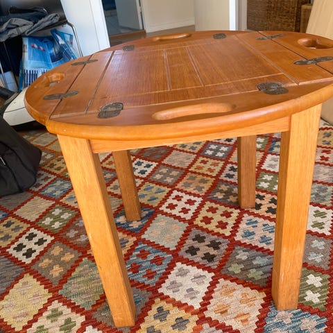 Rundt bakkebord - Butler’s Tray - i mahogni med messingbeslag