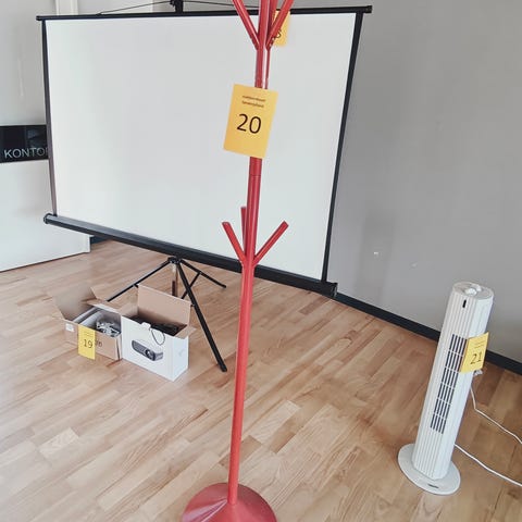 Står meget stabilt takket være den solide fod. Der er hjul under så den nemt flyttes rundt.