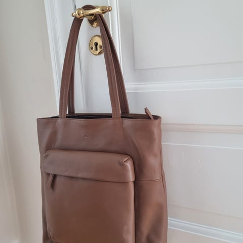 Elegant shopper lædertaske fra Markberg, som lukkes med en diskret lynlås øverst og har en lille indvendig lomme, perfekt til opbevaring af mindre genstande. Forsiden har 2 praktiske større lommer, som er perfekt til nøgler, mobiltelefon osv. Hanken er ekstra lang, så tasken kan bæres over skulderen, også selvom man har en vinterjakke på. Størrelse: Bredde 41 cm / Højde 33 cm / Dybde 11 cm. Aldrig brugt. Nypris 1.899,-