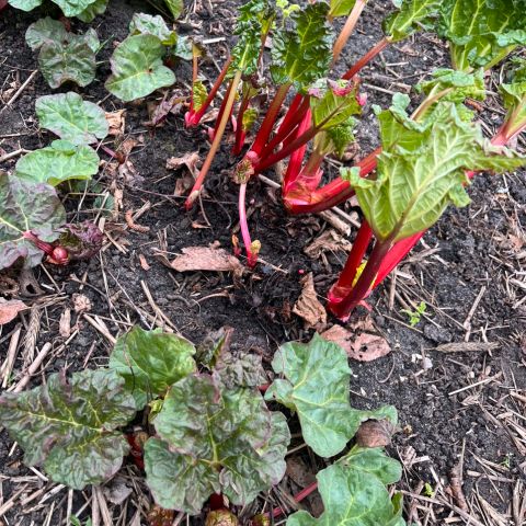 Husløg, linjekonvaller, skovjordbær og diverse krydderurter.