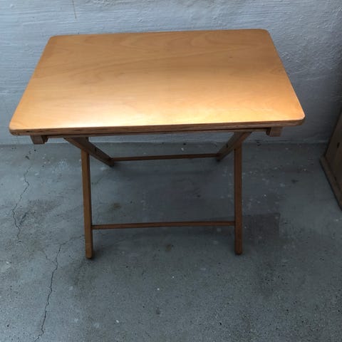 Flot klapbord i rosentræ.Bordplade stort set uden brugsspor,ben har få ubetydelige ridser.50 cm x 50 cm klappet sammen,91 cm x 91 cm med klapperne slået op.Højde 60 cm.