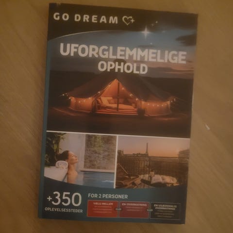 Go Dream kro- og hotelophold gavekort til 2 personer. Gavekortet giver mulighed for ophold på kro eller hotel, som vist på emballagen. Pakken angiver ophold for 2 personer med overnatning. Yderligere detaljer om varighed, inkluderede ydelser og valg af kro/hotel fremgår af selve gavekortet og Go Dreams betingelser.