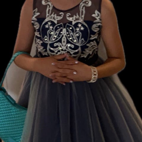 Smuk prinsesse kjole i blå og hvid. Kun brugt få timer.