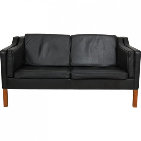 Smuk original Børge Mogensen sofa model 2212, med originalt sort læder. Sofaen er i flot stand. Børge Mogensen designede denne sofaserie i 1960erne, og denne smukke model 2212 giver fint plads til 2 voksne personer. Sofaens ben er i lys mahogni. Sædehøjde ca. 43 cm.
