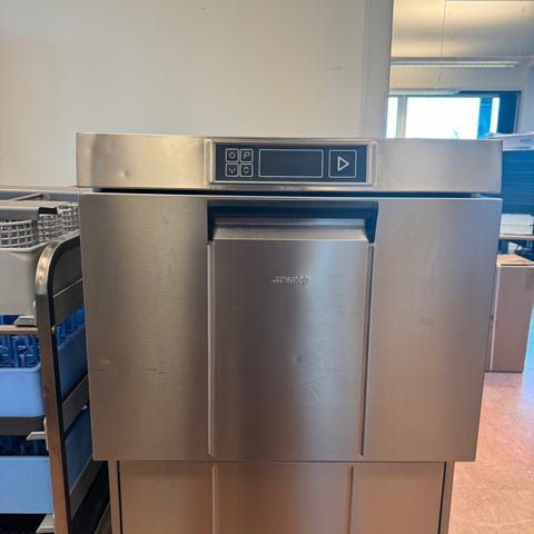 Smeg industriopvaskemaskine i rustfrit stål. Dette er deres første model CW520 som har vist sig at være den mest driftsikre maskine i forhold de 3 nye modeller der er kommet de sidste 8 år. Maskinen er 100% klargjort og alt virker som var den en helt ny maskine.