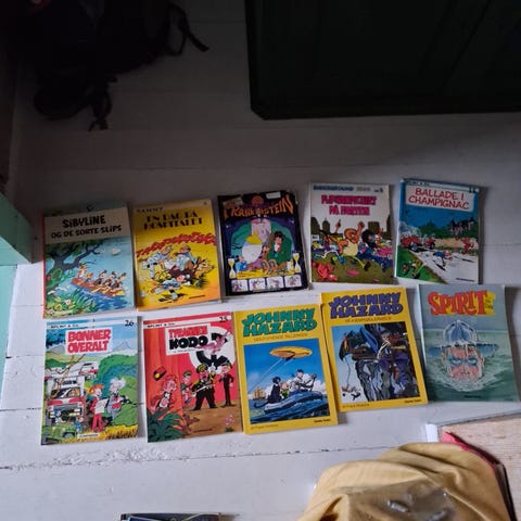 9 tegneserie albums i læst stand og flip og flop er lidt løs i ryggen for stand se billederne som er en del af beskrivelsen