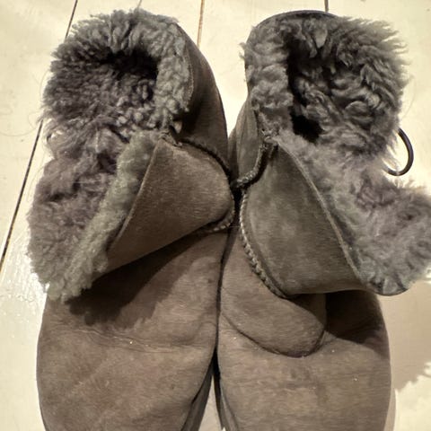 UGG vinterstøvler i størrelse 37. Støvlerne er grå med sort sål og detaljer. De har snørelukning foran og blød, pelsforet inderside for ekstra varme. Ydersålen er kraftig med mønster, der giver godt fodfæste. Velegnet som varme vinterstøvler til hverdagsbrug i koldt vejr.