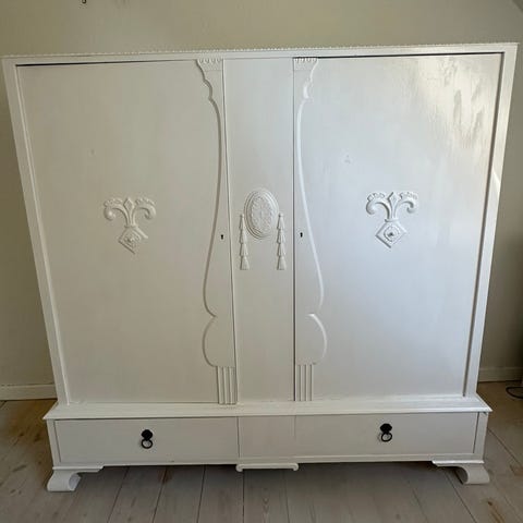 Restaureret og fået bivoks men kan sagtens males med en god spærregrunder.