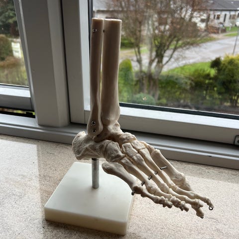 Anatomisk mandlig figur model på fod
