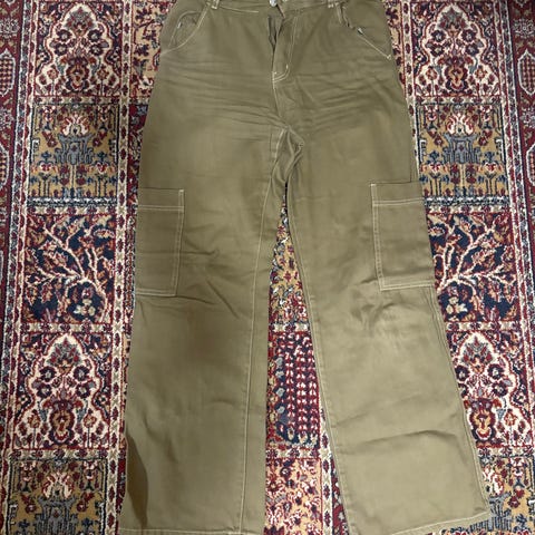 H&M jeans til kvinder i størrelse S med taljemål W38. Bukserne er grå og fremstillet i bomuld. Modellen har flere lommer i cargostil samt gylp med lynlås og knaplukning. Velegnet som hverdagsbukser.