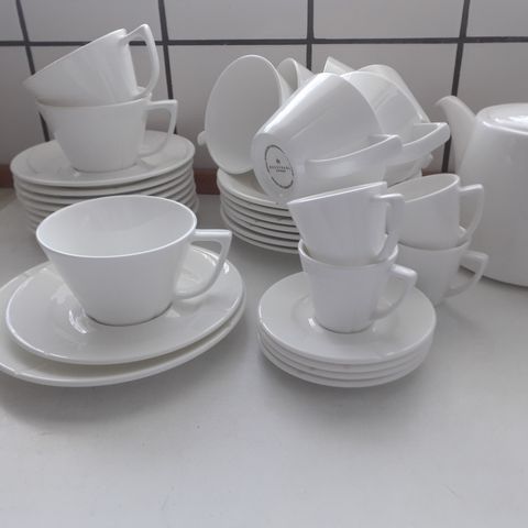 11 stk. hvide Grand Cru tekopper med underkop 28 cl.