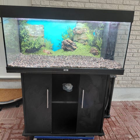 Alt tilbehør med følger, det eneste der mangler er fisk og planter. Der gøres opmærksom på At der er brugt rengørings midler til rengøring, så det kræver en afkogning