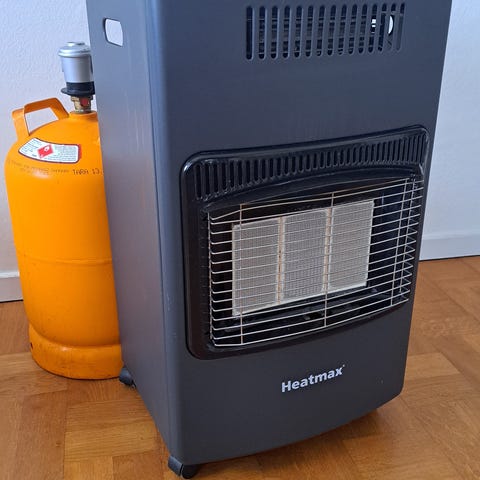 Gasvarmeovn fra Harald Nyborg. Brugt enkelte gange i drivhus. Virker perfekt. Medfølger stor gasflaske som er næsten tom.