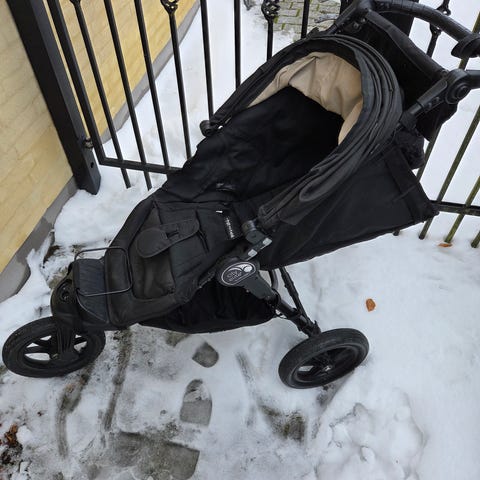 Baby Jogger klapvogn med tre hjul i grå farve. Vognen har stort justerbart kaleche og håndtag med kopholdere. Forhjulet er enkelt og de to baghjul er større, hvilket giver god stabilitet og manøvredygtighed. Sædet har sele og der er opbevaringskurv under sædet. Velegnet til daglig transport af barn på gåture og lignende.