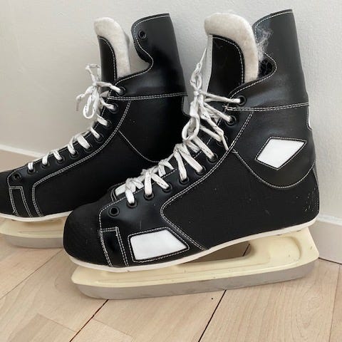 Brugte, men velfungerende ishockey skøjter af mærket CCM til fritidsbrug. Med beskyttere og nyere snørebånd.