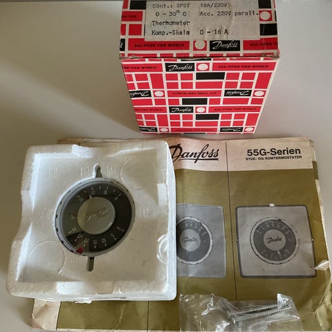 DANFOSS RUM termostat til temperaturregulering i området 0–30°C. Enheden er beregnet til 250V installationer og er specificeret til op til 16A. Leveres med original emballage, og instruktionsvejledning. Velegnet til styring og overvågning af temperatur i tekniske installationer, f.eks. varme- eller køleanlæg, hvor der ønskes automatisk til- og frakobling ved en indstillet temperatur.