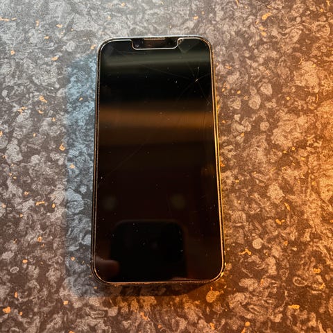 Apple iPhone 13 smartphone med 128 GB intern hukommelse. Telefonen har dual‑kamera på bagsiden og fuldskærmsdisplay på forsiden. På billederne ses original æske, opladningskabel og et etui, som tilsyneladende følger med. Velegnet til almindelig brug, streaming, apps og lagring af billeder, video og musik. Farve og øvrige specifikationer fremgår af billederne.