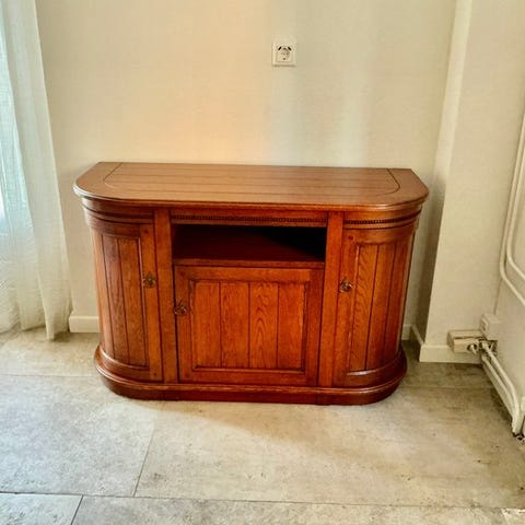 Gammel hvidt radio skab, velegnet til sommerhus, eller ligende sælges, er som billed viser, 93 bred, 83 høj, 40 dyb, afhentes på adress, sendes ikke, giv et bud