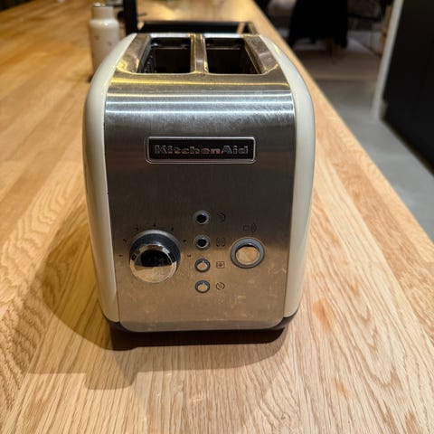 KitchenAid Artisan brødrister med plads til 2 skiver brød. Brødristeren er udført i en kombination af sort kabinet og front i rustfrit stål. Den har justerbar ristningsgrad via drejeknap, løftehåndtag til brødskiverne samt ekstra funktioner via betjeningsknapper på fronten. Egnet til daglig ristning af brød og toast i køkkenet.