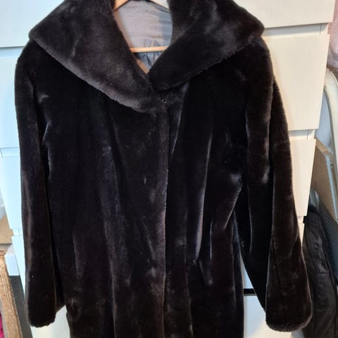 Leopard pelsjakke i Fake Fur. Str i den er 46, men jeg er selv 40 så den er ikke mega stor, men plads til en trøje i den under😊 Meget lidt brugt.