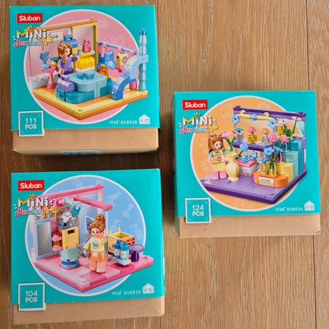 2 æsker med træklodser, den ene forseglet og aldrig åbnet, den anden åbnet og hvor nok mangler nogle få mindre klodser, se iøvrigt foto for indhold
