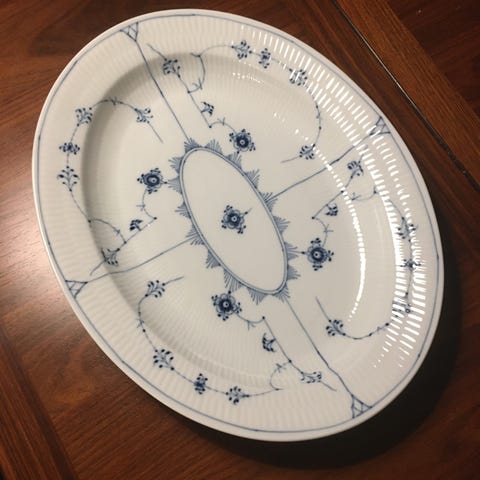 Musselmalet riflet bakke fra Royal Copenhagen.