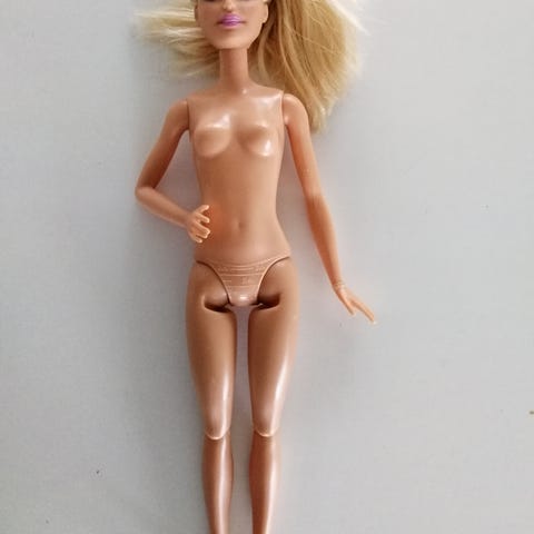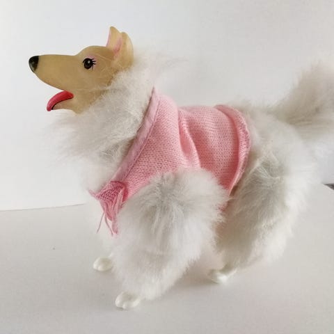 Ældre Barbie hund. H. Ved hoved er 14 cm.