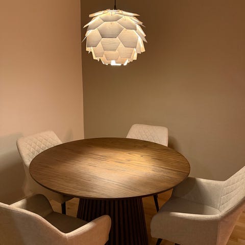Da størrelsen bliver for stor til den bolig vi venter på, kan vi desværre ikke få gavn af det flotte bord.