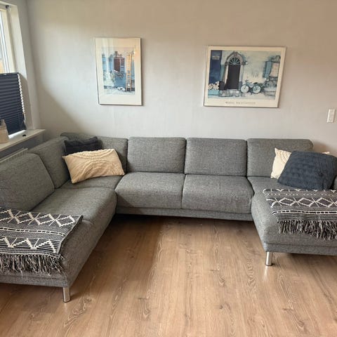 Flot grå farve med stålben, som kan skiftes. Som sådan ingen brugstegn bortset fra nogle huller vores juletræskæde lavede. Jeg har blot lagt et tæppe over :)