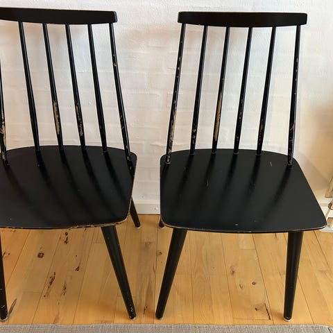 Pindestole, 4 stk, 1 stk støvet grøn, 1 stk støvet blå og 2 stk natur., sælges samlet.