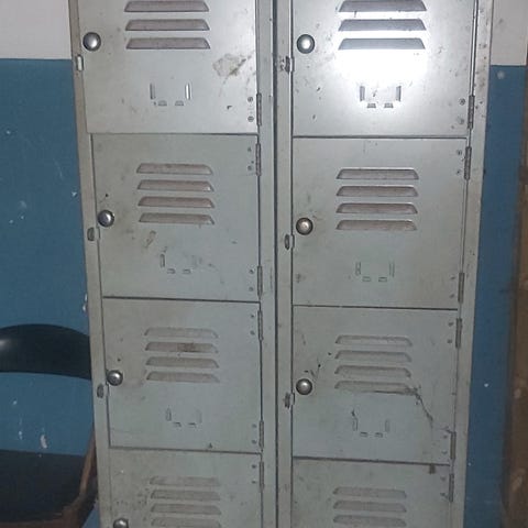 Metalskab med grønne låger med to separate rum. Egnet til opbevaring af tøj, sko eller udstyr i fx bryggers, værksted, garage eller omklædningsrum.