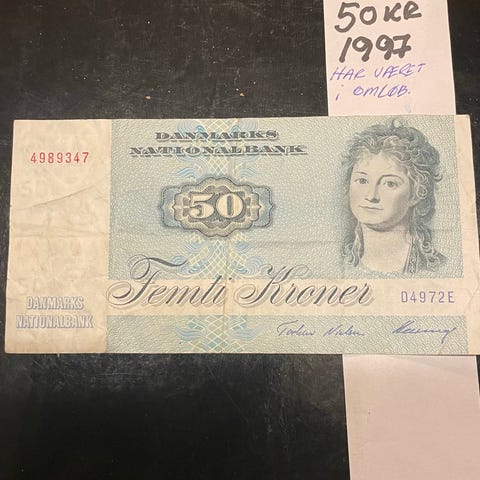 Danmarks Nationalbank 50 kroner seddel. Dansk pengeseddel med pålydende værdi 50 kr. Velegnet som samlerobjekt eller til almindelig betaling, afhængigt af gyldighed og stand.