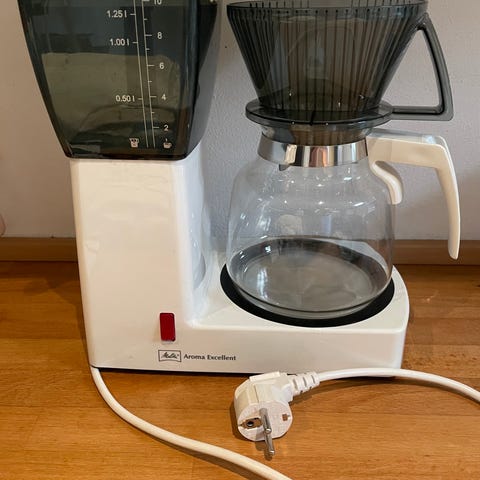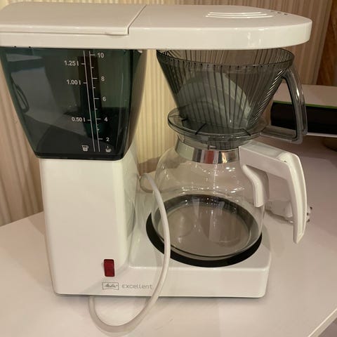 Melitta Cafe 10 kaffemaskine i hvid plast. Klassisk filterkaffemaskine med glaskande og sort håndtag. Vandbeholder med niveauindikator på siden samt aftageligt filterholder-låg for nem påfyldning og rengøring. Maskinen tilsluttes med almindelig netledning og har tænd/sluk-knap på fronten. Velegnet til brygning af filterkaffe i hjemmet eller på kontoret.