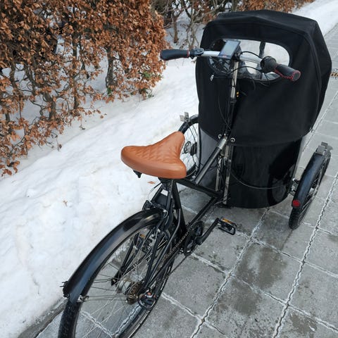 El ladcykel dekoreret i flot Piet Mondrian design sælges