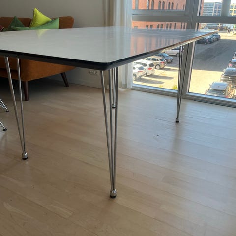 Sælges: Praktisk udtræksbord, der kan forlænges helt op til 4 meter – perfekt til store familier og hyggelige sammenkomster. Bordpladen er ridsefast og nem at rengøre, hvilket gør den ideel til familier med børn. Bordet står adskilt i kælderen, så jeg kan desværre ikke måle det helt præcist.