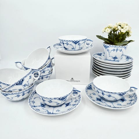 Royal Copenhagen RC#1142 flotteste store tekopper med tilhørende underkopper i fin fejlfri porcelæn. Helblonde.