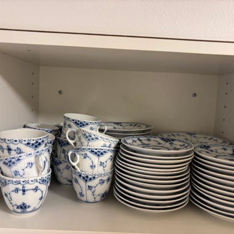 1000,- pr sæt. Alle dele 3500,- fast pris og kun til afhentning af de delikate tynde ting. Tør ikke sende men evt levering på Sjælland.