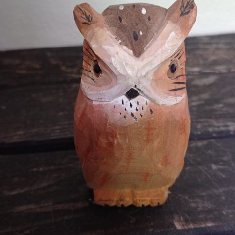 Figur af ugle / træugle / Uglefigur / træfigur / skulptur / træskulptur