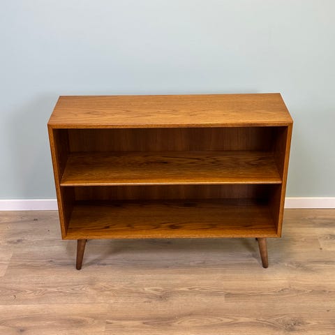 Flot Børge Mogensen reol i teaktræ i flot design. Står flot med naturlige brugsspor og patina. Der haves flere og i andre størrelser. Flytbare hylder.