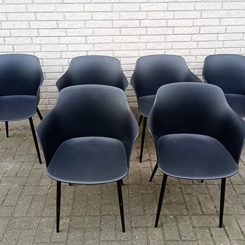 6 styks spisebordsstole. Brugt men i fin stand, trænger til nogle nye filtpuder under ben.