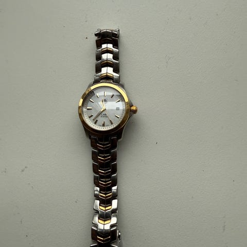 Dette sporty TAG Heuer dameur fra 1980’erne har en kasse udført helt i titanium, med indlæg i lænken og kransen i kulfiber. Urskiven har en smuk, tekstureret overflade med et Heuer-logo.