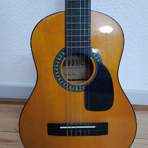 Resonata klassisk guitar i natur træfinish. Forsiden er udført i lyst træ med traditionel roset omkring lydhullet. Bagside og sider har stribet træstruktur. Guitaren har nylonstrenge, klassisk stol og sadel samt mekanikker med hvide stemmeskruer. Velegnet som standard klassisk guitar til generel brug og øvning. Har lidt fejl "se foto" mangler en streng.