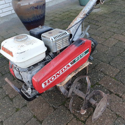 Honda fræser med kost. Der medfølger ligeledes vogn med tip. Starter fint.