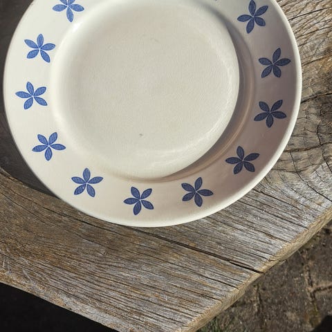 I fin stand - ingen skår, afslag eller revner, men med slitage på guldkanten rundt om tallerkenen.