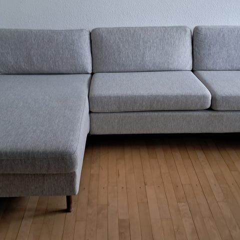Minimal slæbearbejde. Sofaen befinder sig på 2. sal. Sofaen kan skilles af i to dele og løftes hen til elevator, som kører ned i en parkeringsklæder.