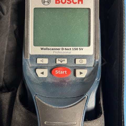 Bosch Truvo multidetektor til lokalisering af skjulte installationer i vægge. Enheden kan registrere jernholdige og ikke-jernholdige metaller samt strømførende ledninger. Betjenes via enkel trykknap og lys-/lydsignal, der angiver fundne objekter. Egnet til brug ved boring og montageopgaver i hjemmet, hvor man ønsker at undgå at ramme skjulte rør eller kabler.
