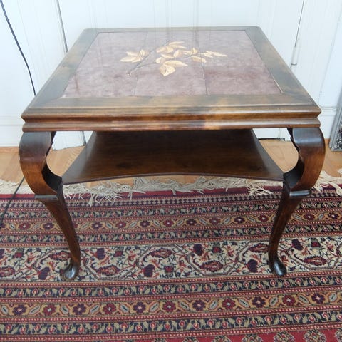 Sofabord, bambusflet, b: 57 h: 48, Bambus bord uden plade / bakke, men med hylde. Det er 47,5 cm højt og 57,5 cm i dia. En plade skulle nok være 51 -51,5 cm i dia.